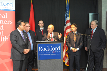 当地时间1月20日中午,鲁冠球一行来到洛克福特市继续访问行程,访问的第一站选择在了去年刚刚落成的万向太阳能工厂。 洛克福特大雪初停,在厚厚的白雪映衬下,万向太阳能工厂前,一排由太阳能光伏板排列而成、可以根据太…