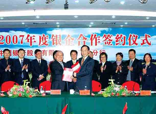 1月23日,中国银行浙江省分行与万向在杭州纳德大酒店举行2007年度银企合作签约仪式。 中国银行浙江省分行行长曾小平(前右一)和鲁冠球分别代表双方在协议上签字?! 「菪?,中国银行浙江省分行将为万向的汽车零部件制造业、高科技产业、三农产业等…