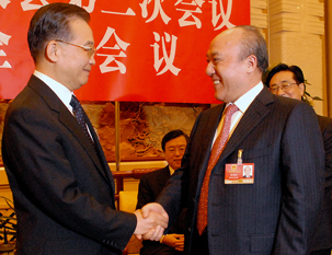 在十一届全国人大二次会议上,温家宝总理参加浙江团讨论时指出: 艰苦创业 大胆创新 克难攻坚 勇往直前 不仅是万向精神,也是浙江精神 三月的北京,初沐春风。9日下午3时,中共中央政治局常委、国务院总理温家宝来到十一届全国人大二次会议浙江代表团,听取代表的意见和建议,同代表们一起审议政府工作报告。 会议开始前,温家宝远远看见走进会场的鲁冠球代表,亲切地招呼说,冠球,我们是老朋友了,今天很高兴,我们又见面了。随后,温总理关切地问走在身旁的鲁冠球,你去年好吗,企业有困难、有冲击了吧,是不是订单减少了?现在订单情况好不好?鲁冠球就问题一一向总理作了简要汇报。 会议正式开始后,主持会议的浙江省委书记赵洪祝让鲁冠球首先发言。刚开始汇报,温总理就亲切地问,冠球,你今年几岁了?鲁冠球回答66岁,总理说那是属羊的,鲁冠球说我是属猴的。这时吕祖善省长就补充说,我们南方人讲虚岁。轻松的开场白之后,鲁冠球向总理汇报了企业在面临前所未有的金融?;奶粽较?,在各级党委政府的帮助下,通过抓稳定、抓转型和抓联合等措施,提振信心、克服困难,实现平稳增长的情况。 汇报中鲁冠球表示,面对进入新世纪以来经济发展最困难的一年,国家迅速出台十大产业振兴规划,制定“汽车下乡”和新能源汽车补贴等政策,尤其是对1.6升及以下排量汽车实行消费税优惠政策后,汽车销量已开始上升了,企业形势也开始好转了。温家宝总理听后,露出了欣慰的笑容。 当鲁冠球汇报“企业1月份产量还在下降,到2月份累计就有2%的增长了,企业应对困难更有信心时”,温总理马上停下手中的笔,关切地问,这2%是同比还是环比。鲁冠球回答,是同比,是与去年同比增长2%,总理听了后连忙肯定地说,今年年初能逆势增长,那真不容易,真不容易! 当鲁冠球汇报,这次会议结束回去以后,万向纯电动汽车锂离子动力电池生产基地要搞一个热热闹闹的奠基仪式,并介绍万向创业39年来,从来没有搞过庆典,这次破例搞,就是为了提振大家的信心时,总理不时地点头称是。随后语重声长地说,我说一句话,你搞一个简朴的庆祝仪式,我事先给你祝贺,因为这个庆典仪式主要是为了提振信心。 当鲁冠球向温总理建议,希望国家重视和支持发展乡镇企业,在《政府工作报告》中增加乡镇企业的内容时,温家宝总理略带歉意地说,我要是前天来就好了,昨天工作报告已经修改完送上去了,但是我会记在心里,好吗? 此后,鲁冠球还就国家尽早制订鼓励企业联合的优惠政策、加大对新能源产业发展的支持力度等问题提出了建议。 温家宝总理在听取鲁冠球等全体代表发言后,分别作了总结讲话。他说,万向和浙江企业的发展,我很关注。其实万向企业的成长,主要是三个精神值得发扬,一是创业精神,二是克服困难的精神,三是创新精神。有了这三个精神,你就能够克服当前金融?;吹挠跋?,继续把万向企业办好,这也叫万向精神。而且,我以为这不仅是万向精神,恐怕也是浙江精神,就是艰苦创业、大胆创新、克难攻坚、勇往直前,这也是浙江精神! 温总理对万向精神的高度概括和提炼,春风化雨,给我们万向以巨大的鼓舞,进一步提升了我们必胜的信念。只要我们继续艰苦创业、克难攻坚、大胆创新,万向必将取得更大的辉煌! 温家宝总理与鲁冠球亲切握手。 单启宁 摄 |